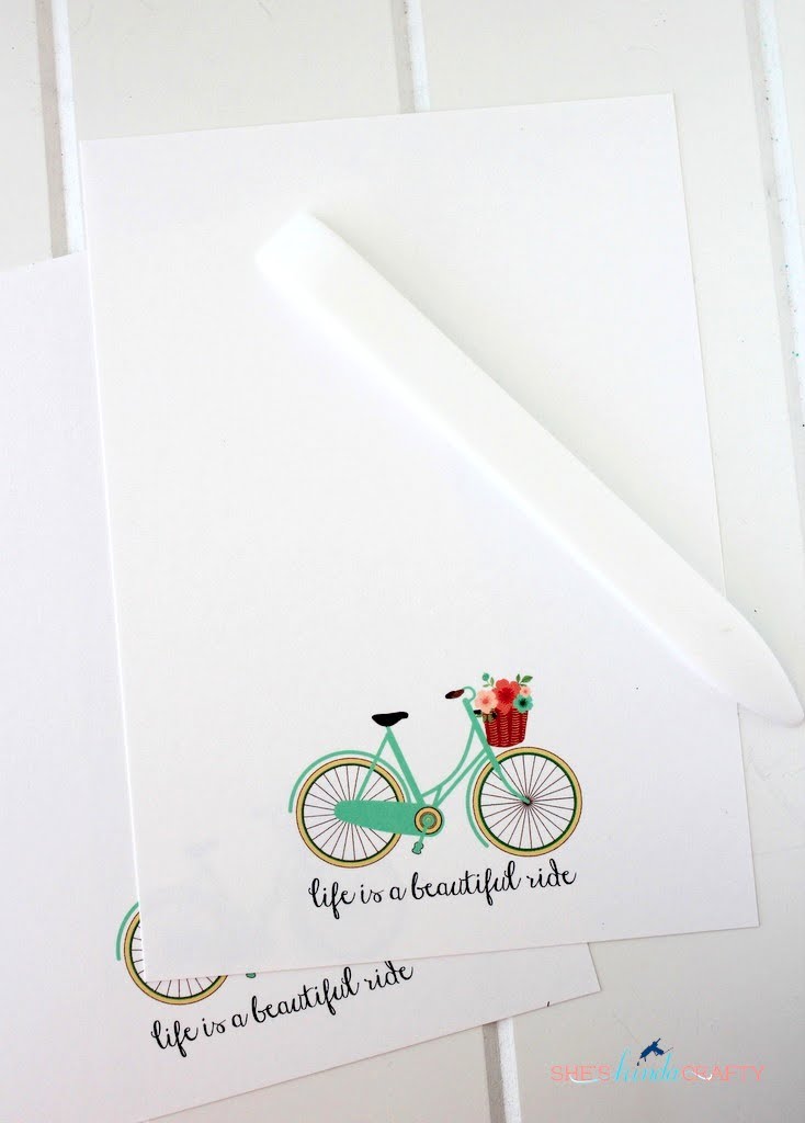 Download your free printable Mother’s Day Card and coordinating “Life is a Beautiful Ride” stationery from She’s Kinda Crafty. Scroll down to the pink “Mother’s Day Card file” and Life is a Beautiful Ride Stationery file” text links. Another printable gift for mom – I love it!
