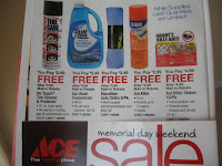 And as I predicted, they now have a special rebate form available on their site: Ace Memorial Day Sale Rebate Form for May 23-26. A great form to print before you head to Ace to make sure you are “buying” the right stuff (and that you’ll get your money back!). It looks like you have to mail-in your UPC symbol for the Microfiber towels and Grant Ant Spikes, but you can do the Terro Ant Killer, Blue Coral Carwash, and No Touch Tire Cleaner as eRebates.