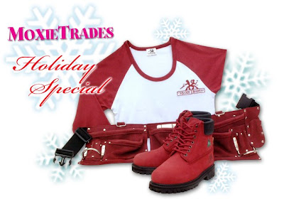 To help you embrace your inner “moxie”, Moxie Trades is offering one lucky reader a gift basket with a pair of work boots, a raglan t-shirt and tool belt in the color or your choice (red, pink, or baby blue available in sizes 5 thru 12). This do-it-herself prize package has a suggested retail value of $150.