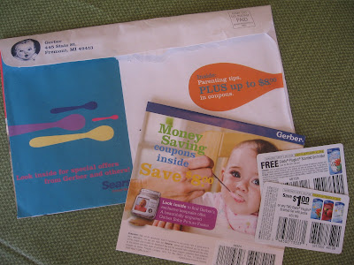 Did you get an envelope in the mail that looks like this? Open it up and you hopefully will find the same goodies that I found. There is a coupon for a FREE Glade Plugins Scented Gel Holder (up to $4.50 value) plus $8 in coupons for Gerber baby food and dinnerware. Update: It sounds like my readers are reporting getting different coupons than I did, but definitely check it out if you receive this in the mail!